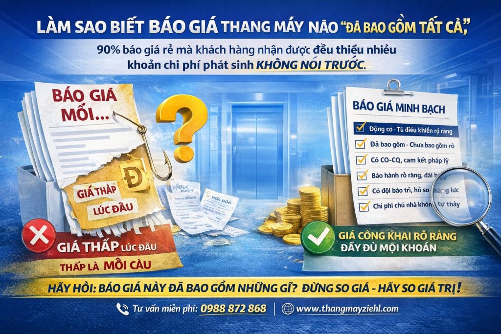 1. Vì sao báo giá thang máy thường “thiếu” nhiều hạng mục?